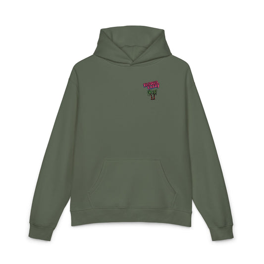 Relaxed Hoodie — Pink Floral Heart Chest Logo Hoodie